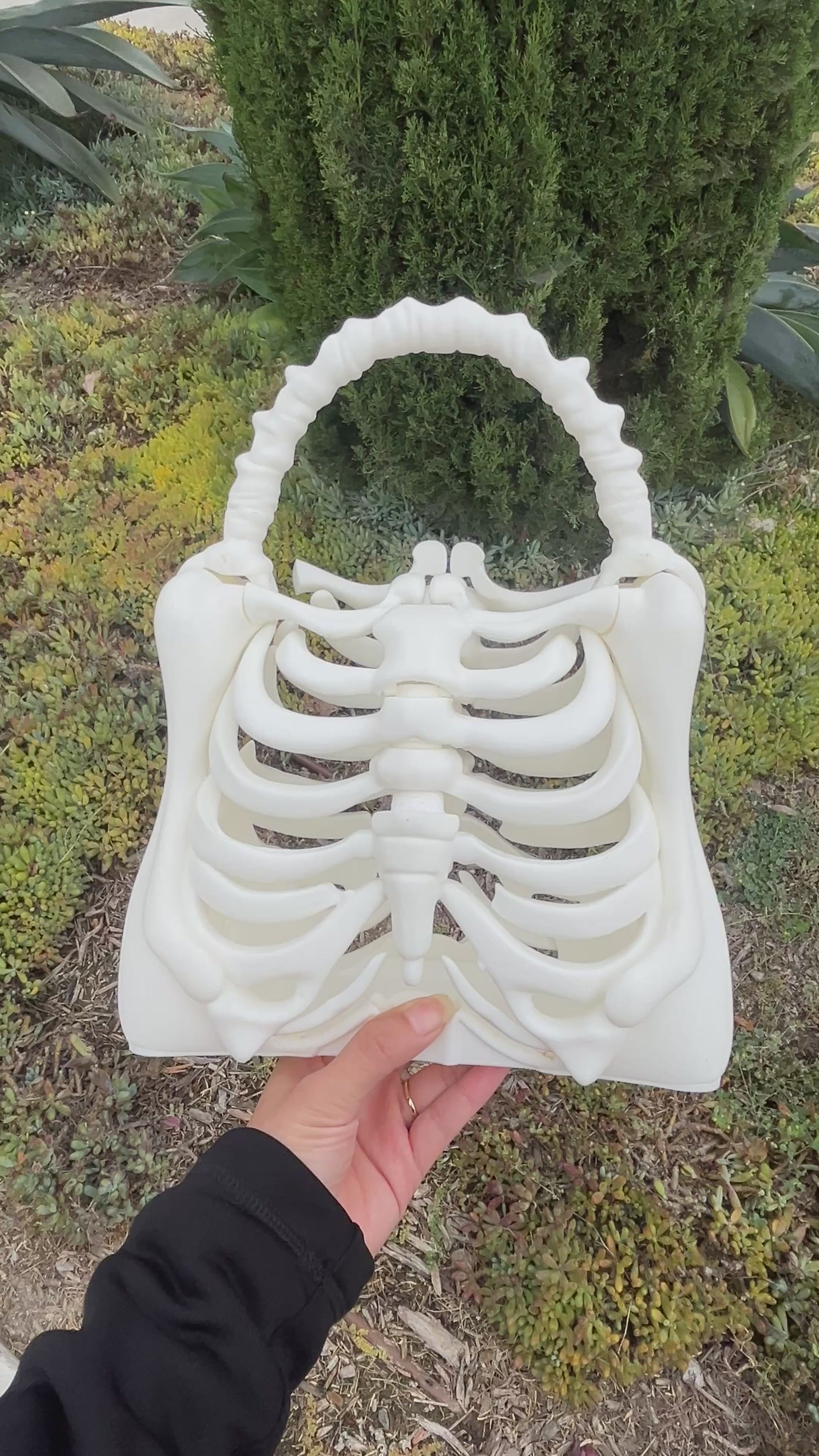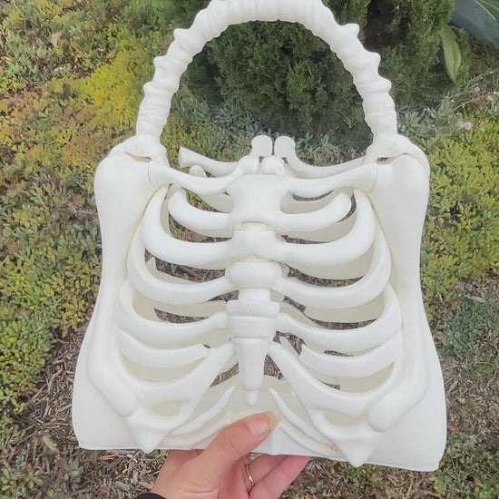 Step into spooky season in style with this one-of-a-kind Skeleton Ribcage Bag! Crafted to resemble an anatomically inspired ribcage, this hauntingly beautiful piece is both eerie and elegant — perfect for Halloween lovers, gothic fashion enthusiasts, or anyone who adores a bold statement accessory.